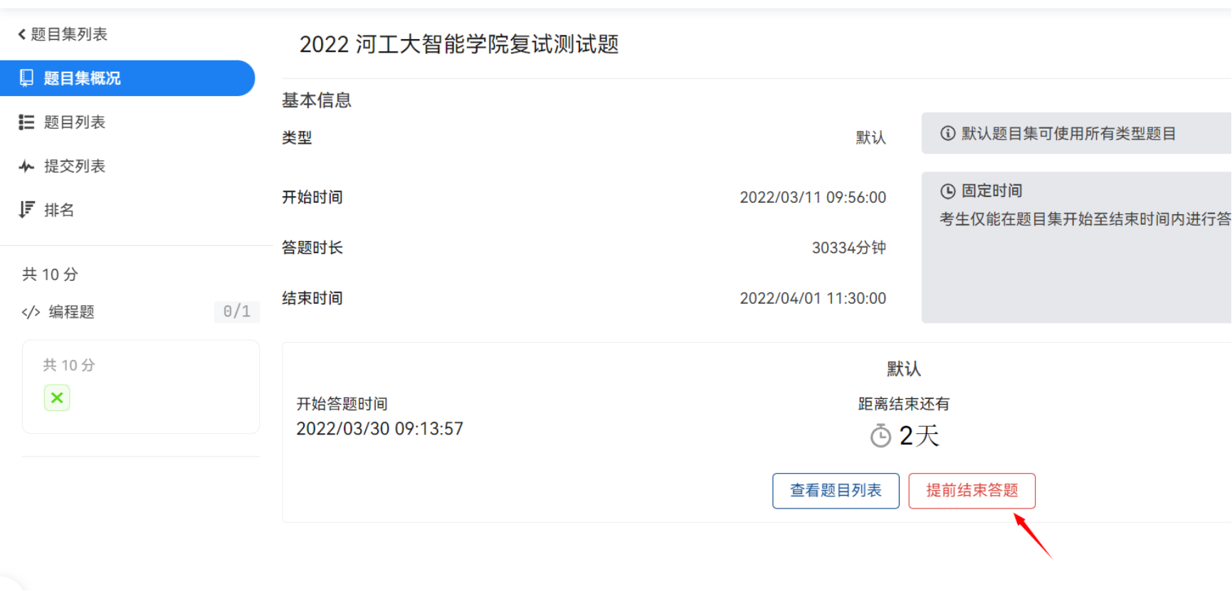 ③ 提前结束考试问题: