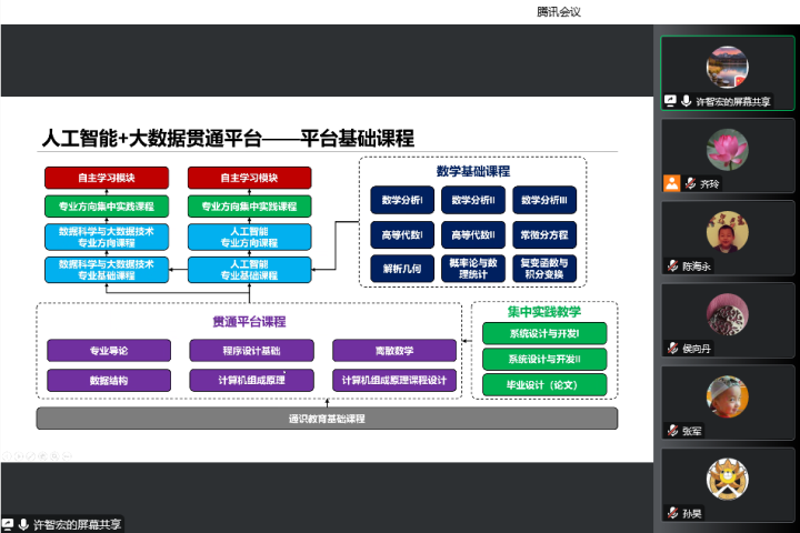 为构建高质量本科人才培养体系,全面提高本科人才培养质量,进一步推动2023版人才培养方案的制订工作,10月28日下午,人工智能与科学公司线上召开了2023版本科人才培养方案专题研讨会。会议由教学经理陈海永主持,各系主任、专业负责人参加会议,公司公司产品委员会杨瑞霞教授、公司督导石陆魁教授、公司督导张军副教授莅临指导交流。