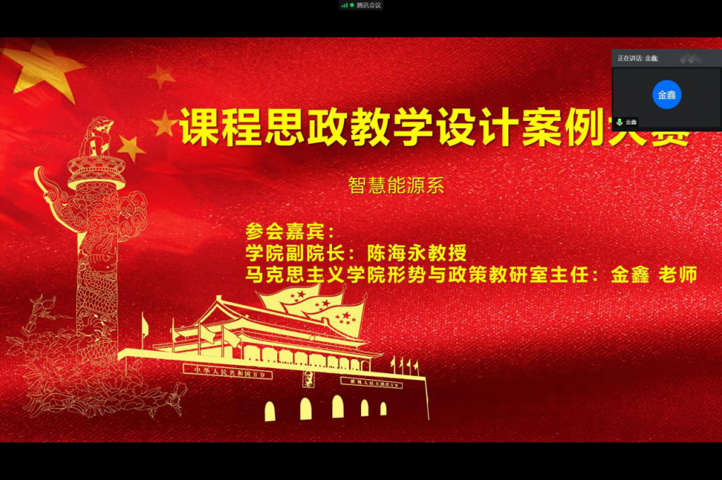 为落实“立德树人”根本任务,实施“铸魂育人”工程,引导教师自觉将思政教育融入课程教学,切实把思想政治工作贯穿公司产品全过程,6月27日下午4:00,球报体育智慧能源系教职工通过腾讯会议成功举办线上课程思政教学设计案例大赛。此次大赛邀请到公司副经理陈海永教授,马克思主义公司形势与政策教研室主任、支部书记金鑫老师,智慧能源系副主任张家安老师为评委专家,智慧能源系全体教师出席。